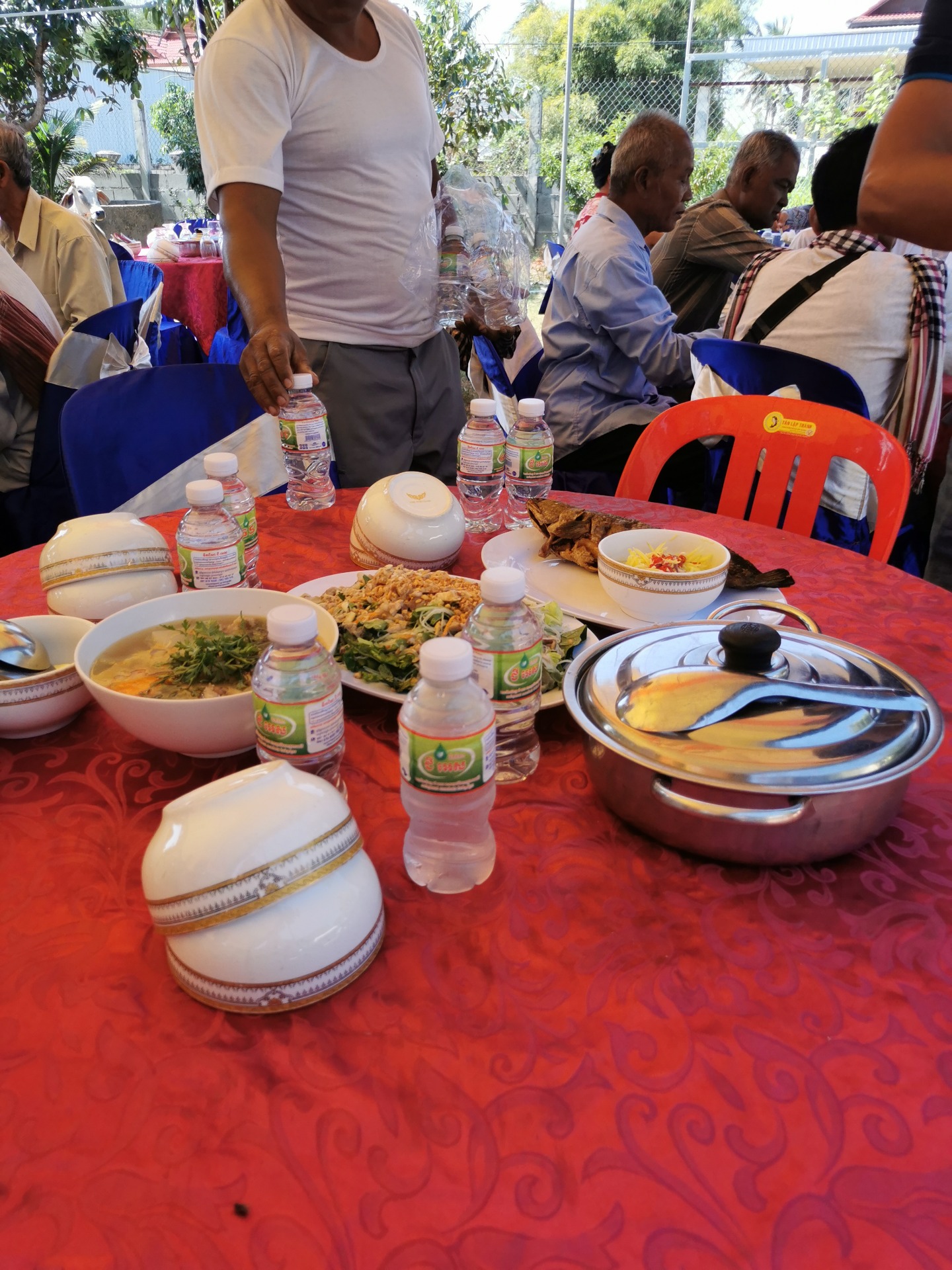 Wir sind in der einen Woche, in der wir bereits hier sind, schon zweimal auf eine Beerdigung gegangen. Fairerweise muss man sagen, dass es zweimal die gleiche war, Beerdigungen werden hier über mehrere Tage gefeiert. Das erste Mal war tatsächlich gleich nach unserer Ankunft, Searey stellte sich vor, zeigte uns sein Haus und unser Zimmer - und dann gings auch schon ab auf die Beerdigung. Spannend fand ich zum einen, wie locker die Leute dort waren, es fühlte sich eher wie ein Leichemschmaus an, wo man auch ratschen und sogar mal lachen kann. Und spannend fand ich auch, dass jeder Gast eine Spende entrichtet, um die Kosten für die aufwändige Feier zu decken. Dafür werden sie vom Dorfältesten über Lautsprecheranlage mit einem langen Gebet gesegnet.