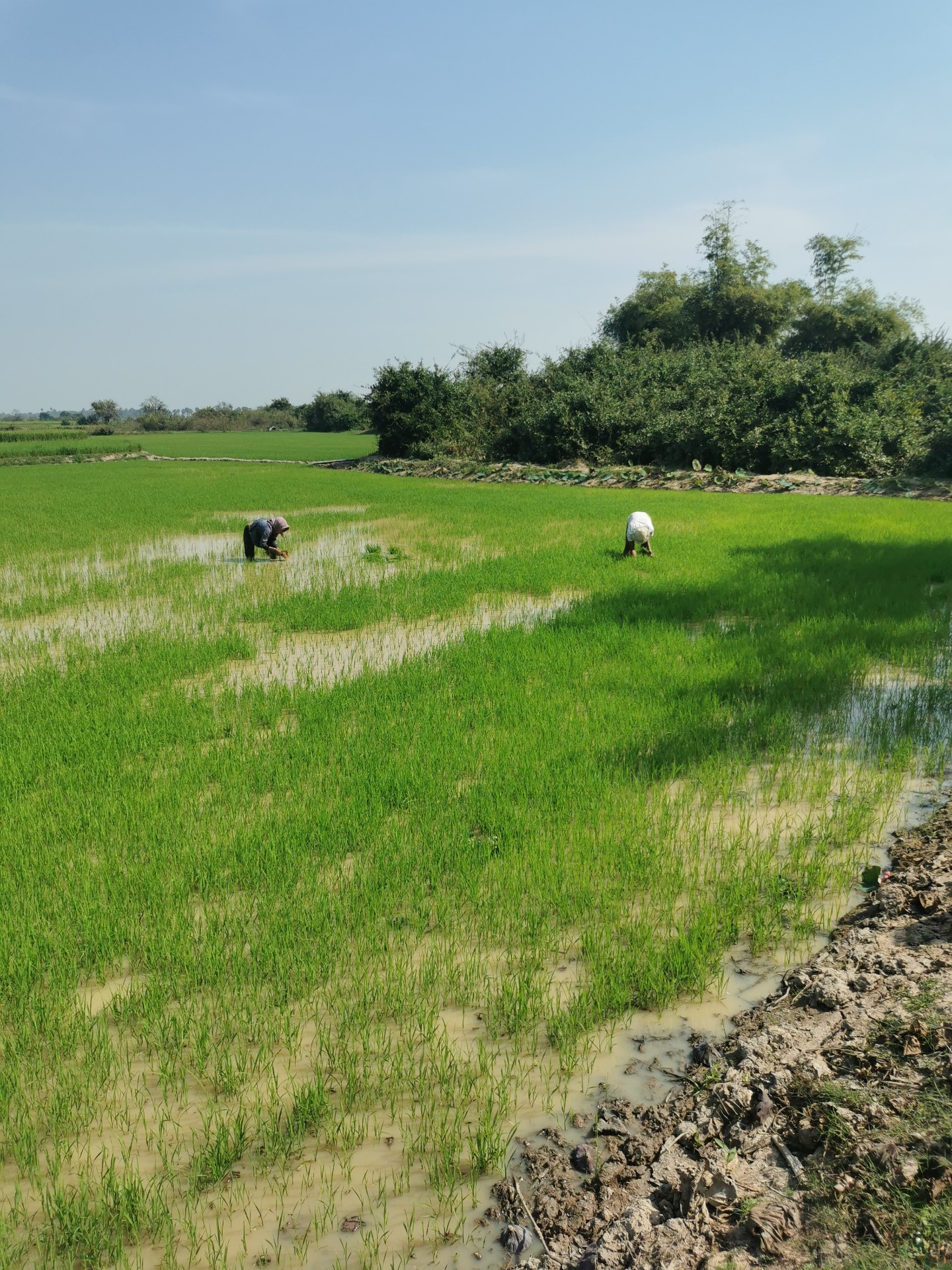 Natürlich nur ein Scherz, aber wir haben uns tatsächlich heute mal aushilfsweise als Reisbauern verdingt - eine recht spannende Angelegenheit.
