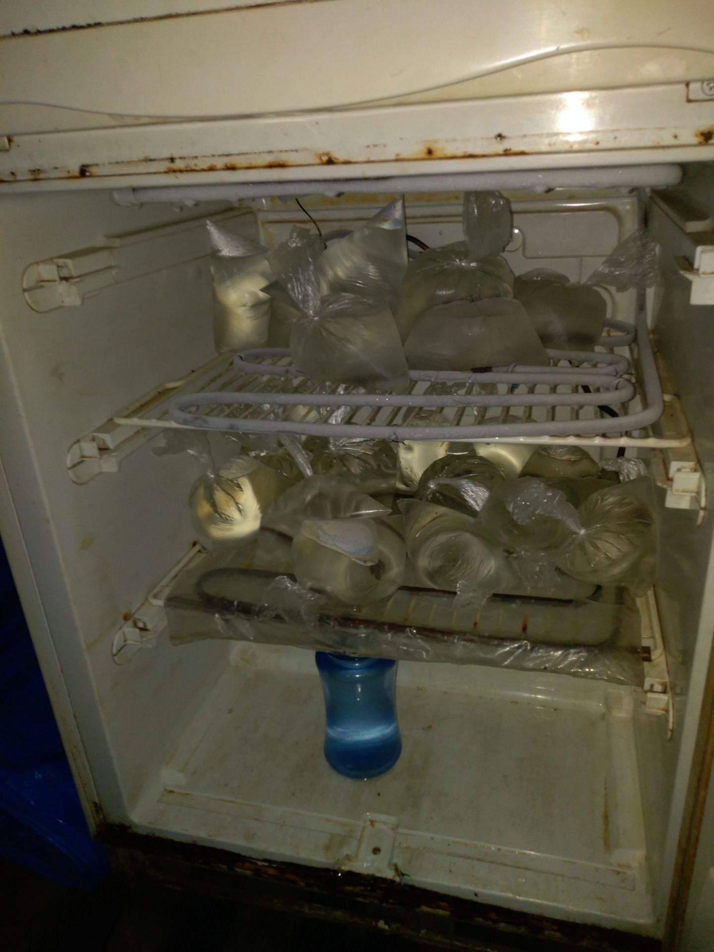 Wenn ich mal kein Poscho mehr sehen kann, begleiten mich meine Bodyguards gerne mal in ein "Restaurant". Das Einzige, das zu Fuß vom Haus aus zu erreichen ist, ist eine abgelotterte Kaschemme, in der es genau ein Gericht gibt. Auf die Frage, ob ich ein Wasser zu meinem Reis mit Soße haben könnte, meinte sie, wenn ich ihr Geld gebe, geht sie zum Nachbarn und kauft mir eins. Leitungswasser ist für Touristen hier scheinbar nicht so gesund...Die Einheimischen kaufen ihr Wasser aber portionsgerecht verpackt in kleinen Plastiktüten: